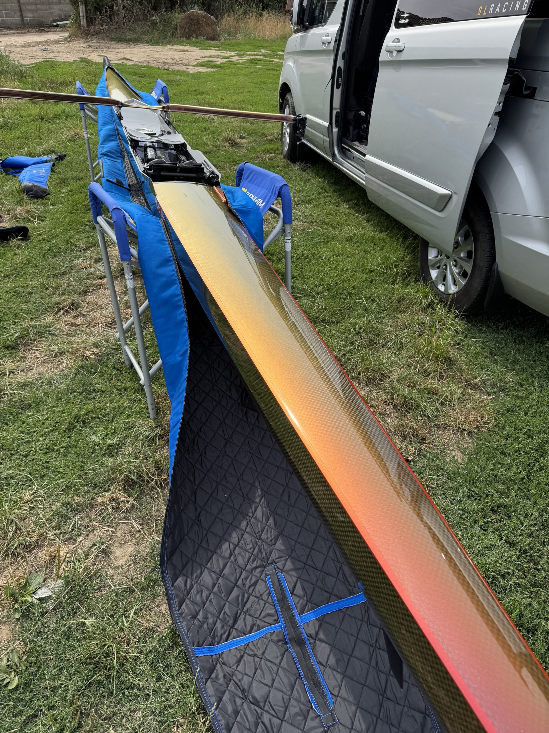 Stunning 2025 FluidMax Single 52-66kg with matching carbon rigger. In pearlescent, Only use at the world masters, then ready for collection!